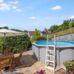 Outside the rear garden has a paved patio flanked by a brick wall and sleepered boundaries with meandering paths that lead up through an established garden with stocked flower and shrub borders with an array of mature trees, shrubs, palms, fruit trees, raised vegetable bed and ponds linked with a waterfall and wooden bridge. Situated at the top of the garden is a further paved terrace where an above ground heated pool is to be found and a further lawned garden beyond.