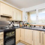 The kitchen has roll top working surfaces with cupboard and drawer storage both above and below, inset stainless steel sink and drainer overlooking the balcony through a UPVC double glazed tilt and turn window, space for cooker, fridge/freezer and washing machine.