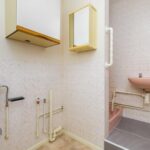 Shower room / WC. Low-level WC, shower tray with electric shower above, wash basin and space and plumbing for washing machine.