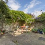 Secluded west facing garden, variety of potted trees, shrubs and flowers, flint walls encircled with wisteria, jasmine and honeysuckle. Outside light and tap.