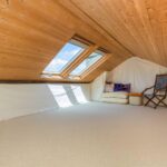 Currently used as a meditation & yoga space. Two large double glazed skylight windows offering rooftop views towards the Downs. Newly-carpeted, fully insulated, power and lighting installed. Extensive under-eaves storage.