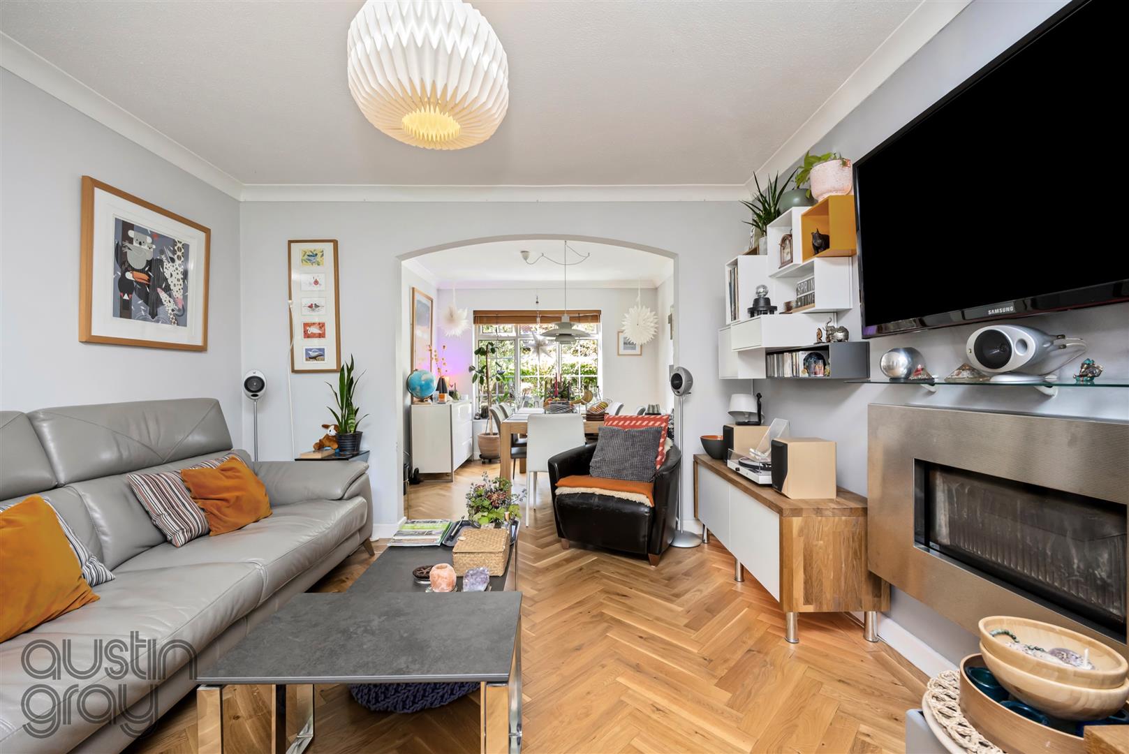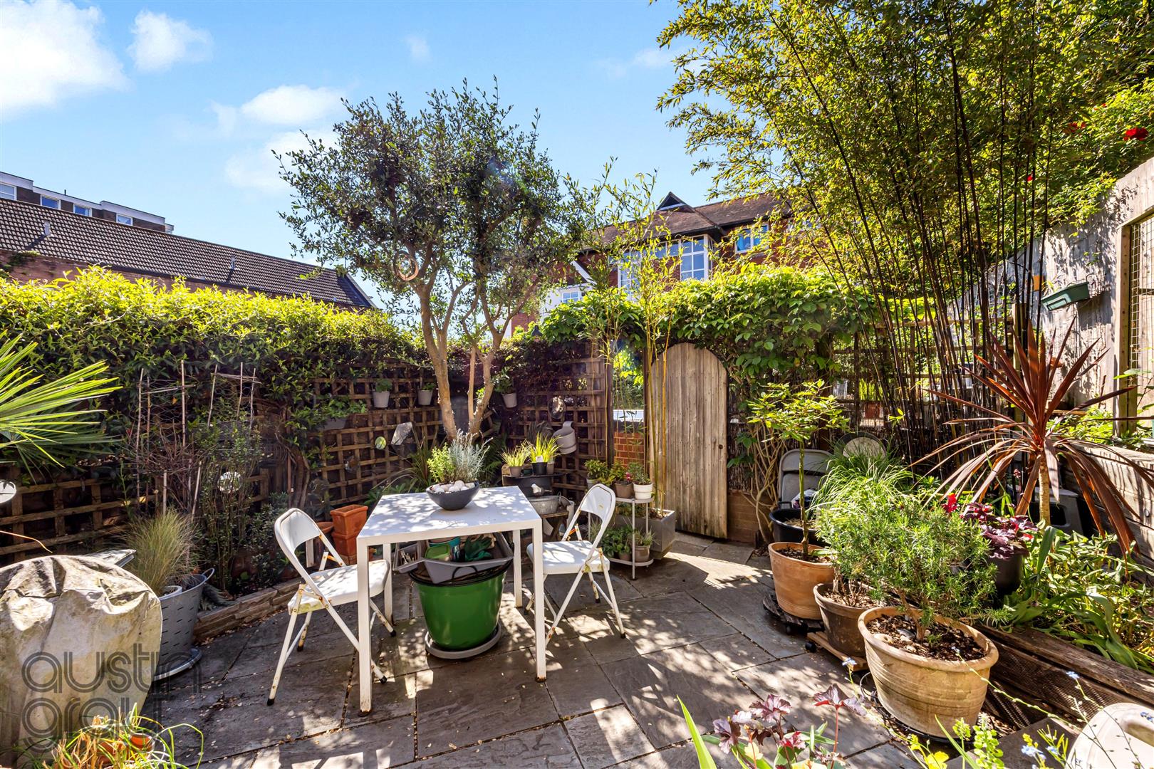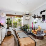 Set back behind a charming front garden framed by mature shrubbery, this elegant home welcomes you into a landing with a stylish guest bathroom and deep built-in storage. The dual-aspect living and dining room is filled with natural light, featuring parquet flooring and a gas fireplace, and leads through glazed doors to a modern kitchen with integrated appliances, ample storage, and direct access to a west-facing courtyard garden. The property also benefits from a brand-new boiler with a 10-year guarantee, providing peace of mind and energy efficiency.